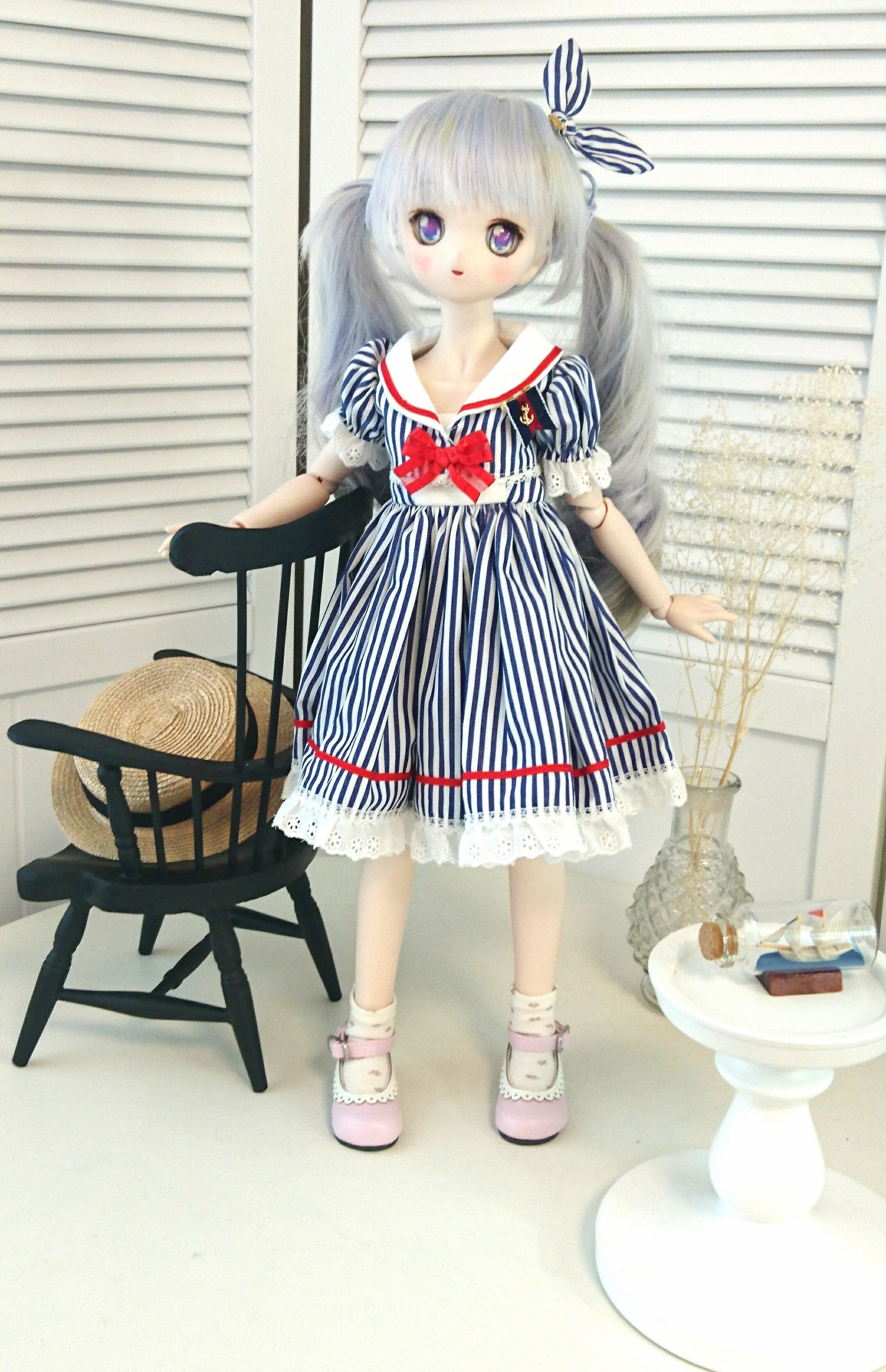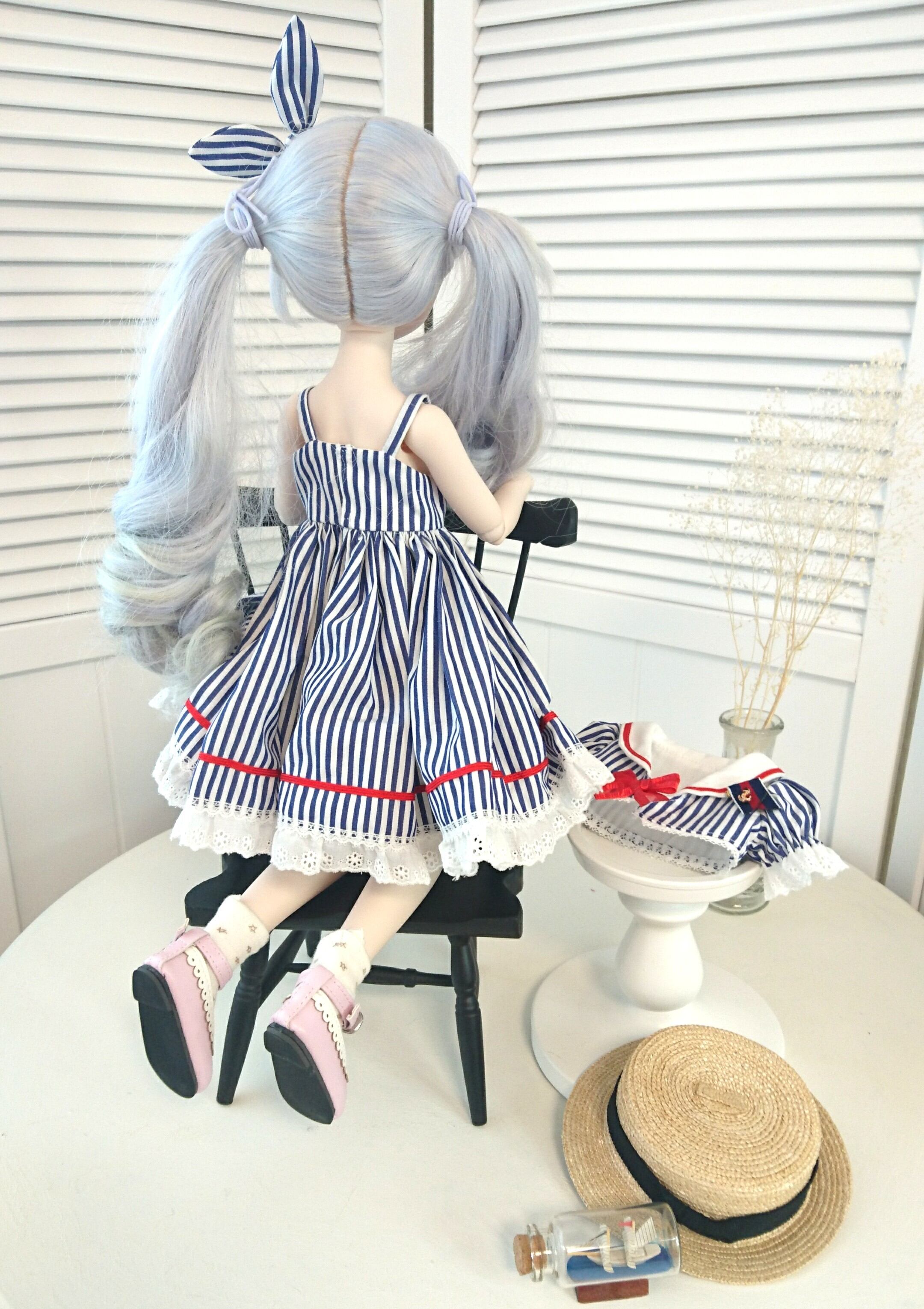 ノースリーブワンピースとセーラー襟のボレロ、ヘアアクセ、リボンブローチのセットです。