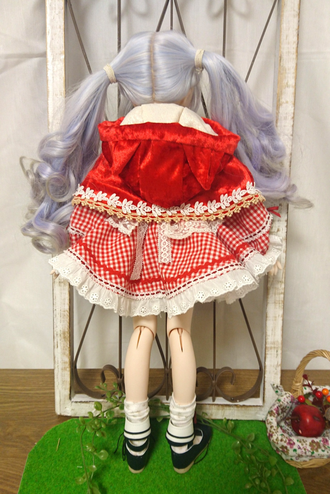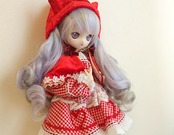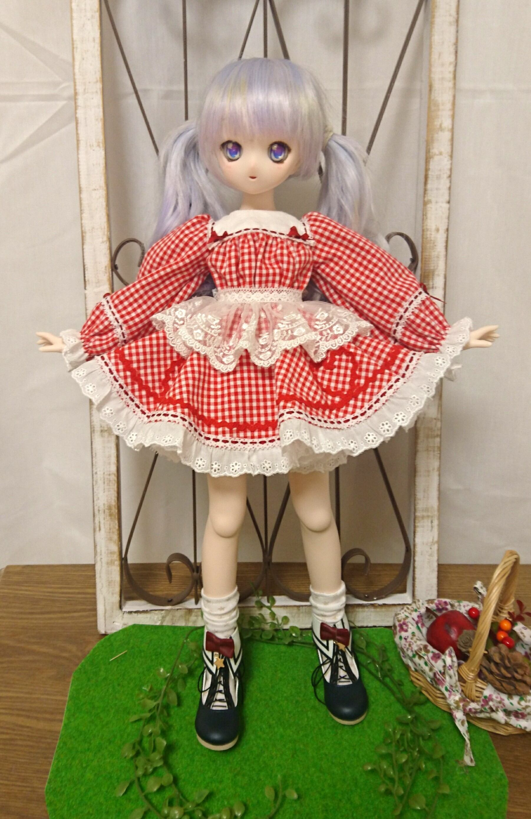 【40㎝ドール用】赤ギンガムの赤ずきんちゃんワンピース